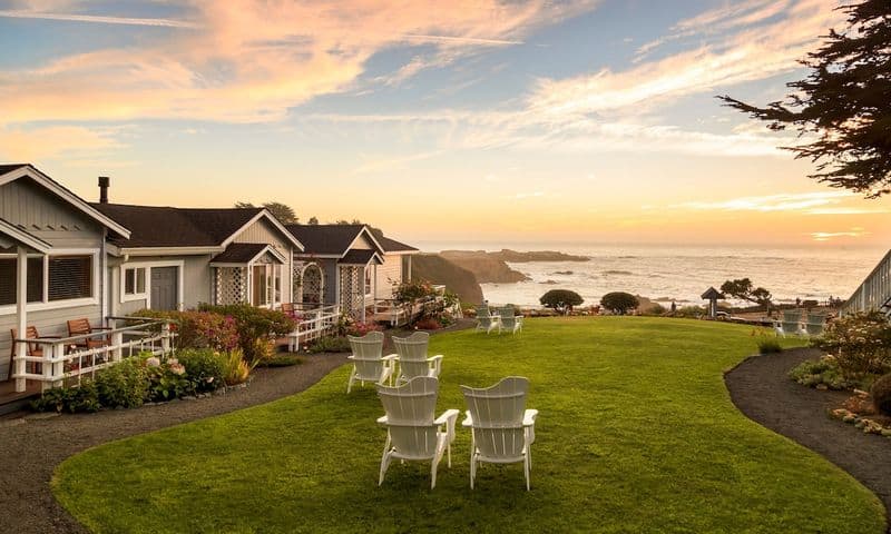 Inside, nautical touches and driftwood accents honor the maritime setting. The stone fireplace keeps things cozy during foggy mornings when the coastline disappears into mist.