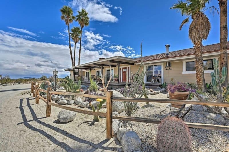 Golden light bathes this adobe-style retreat as the sun sets behind distant mountains. Located in California’s largest state park, the cabin sits in splendid isolation surrounded by ocotillo, barrel cactus, and the occasional desert bighorn sheep.