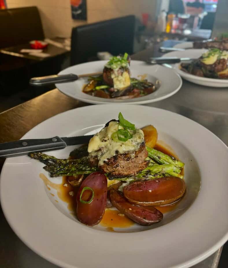 Try their unique schnitzel-crusted filet – a tender beef medallion wrapped in thin veal and breaded – for a true German-American fusion experience.