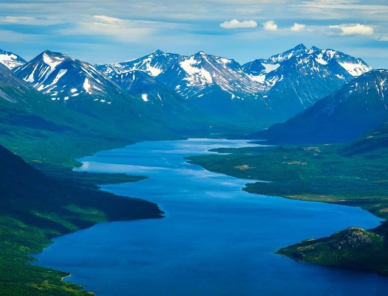 Bear viewing rivals Katmai but with smaller crowds. Coastal meadows fill with grizzlies during summer salmon runs, allowing photographers to capture incredible close-range images from safe viewing platforms. The park’s namesake lake stretches 42 miles through a stunning mountain valley.