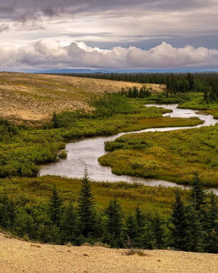 Half a million caribou migrate through the park twice yearly, their hooves leaving trails across the ancient dunes. The Kobuk River winds through boreal forest, providing a critical salmon highway and transportation route for local indigenous communities who still practice traditional subsistence hunting.