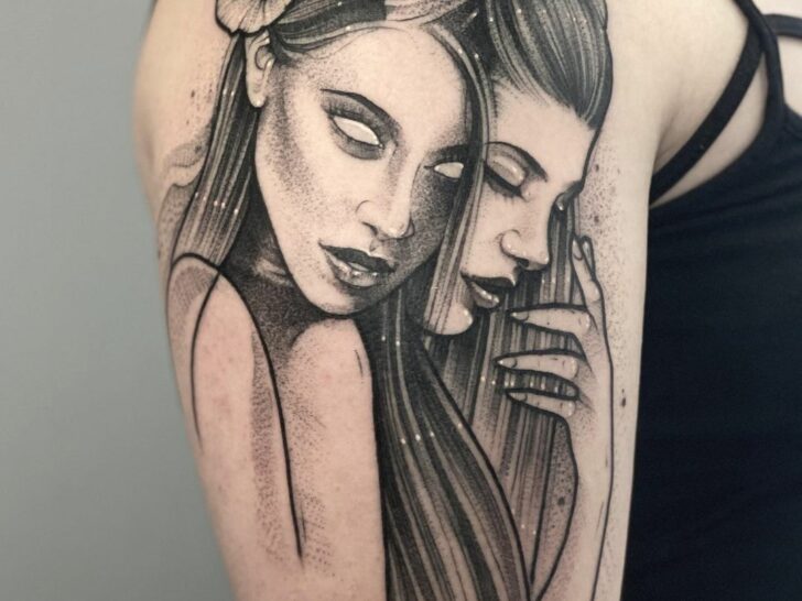 This stunning Avatar-inspired tattoo features the Koi fish, representing Tui and La, the ancient spirits of the moon and ocean. In a cool design, La appears as a black koi fish, while Tui takes the form of a white koi, symbolizing their eternal dance of balance and harmony.