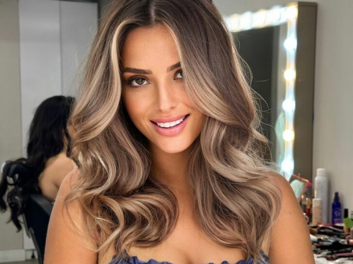 This balayage combines blonde and soft brown tones, resulting in a flawless hair color that’s beautifully complemented by the gentle waves.