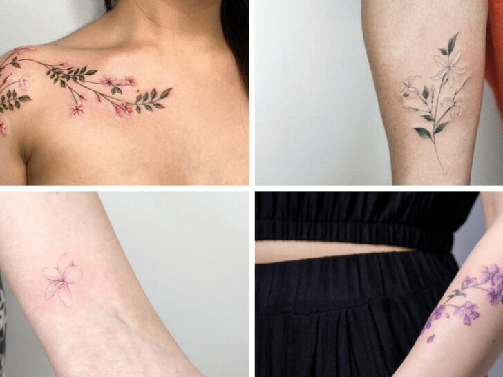 Another simple tattoo design shows the outlines of a cherry blossom branch. You can even use black and red ink so that you’re sure your tattoo will be readable for a longer period of time.