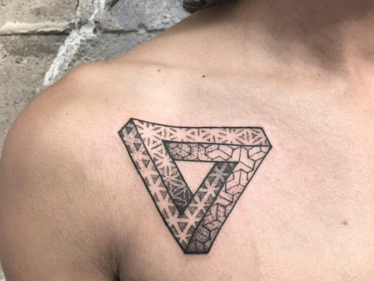 Experience the magic of a true optical illusion with this captivating anaglyph tattoo, showcasing the iconic horns of Maleficent. The intricate design comes to life with a mesmerizing 3D effect, while the deep, bold lettering below reads “True Love’s Kiss”.