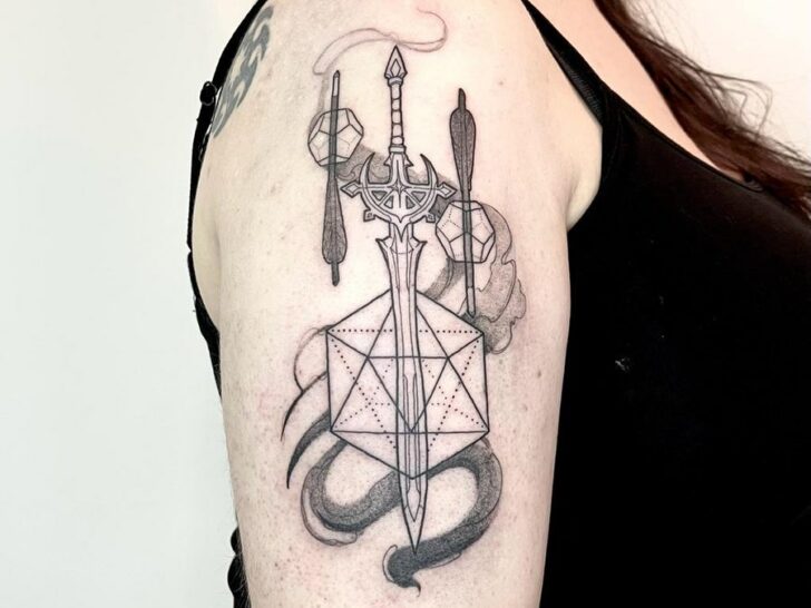 On the other hand, the geometric shapes introduce a modern touch, beautifully enhancing the meaningful nature of your tattoo with a sense of intrigue.