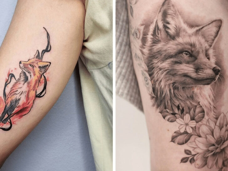 No one says that you can’t add whatever colors you’d like to your tattoo. This, for example, is a watercolor design. This owl is standing on some flowers that compliment the rest of the colors.