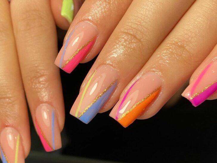 Take a look at these vibrant nails in orange tones with a marble design, ideal for hot summer days. Their warm hues evoke the feeling of sipping an Aperol Spritz by the beach, adding a touch of tropical charm to your fingertips.