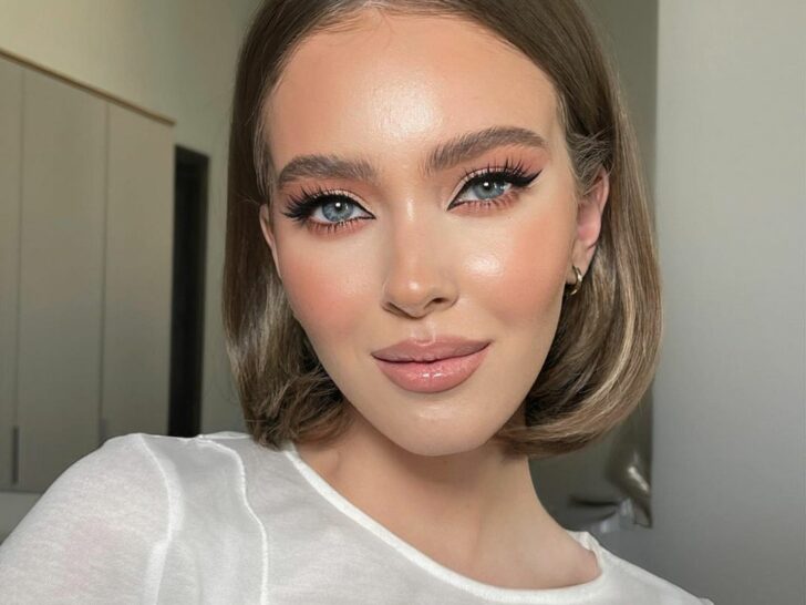 This layered light copper bixie blends the features of a pixie and a bob, complete with face-framing bangs and a deep side part. The layers introduce movement and texture, while the warm copper hue adds a vibrant, contemporary flair.